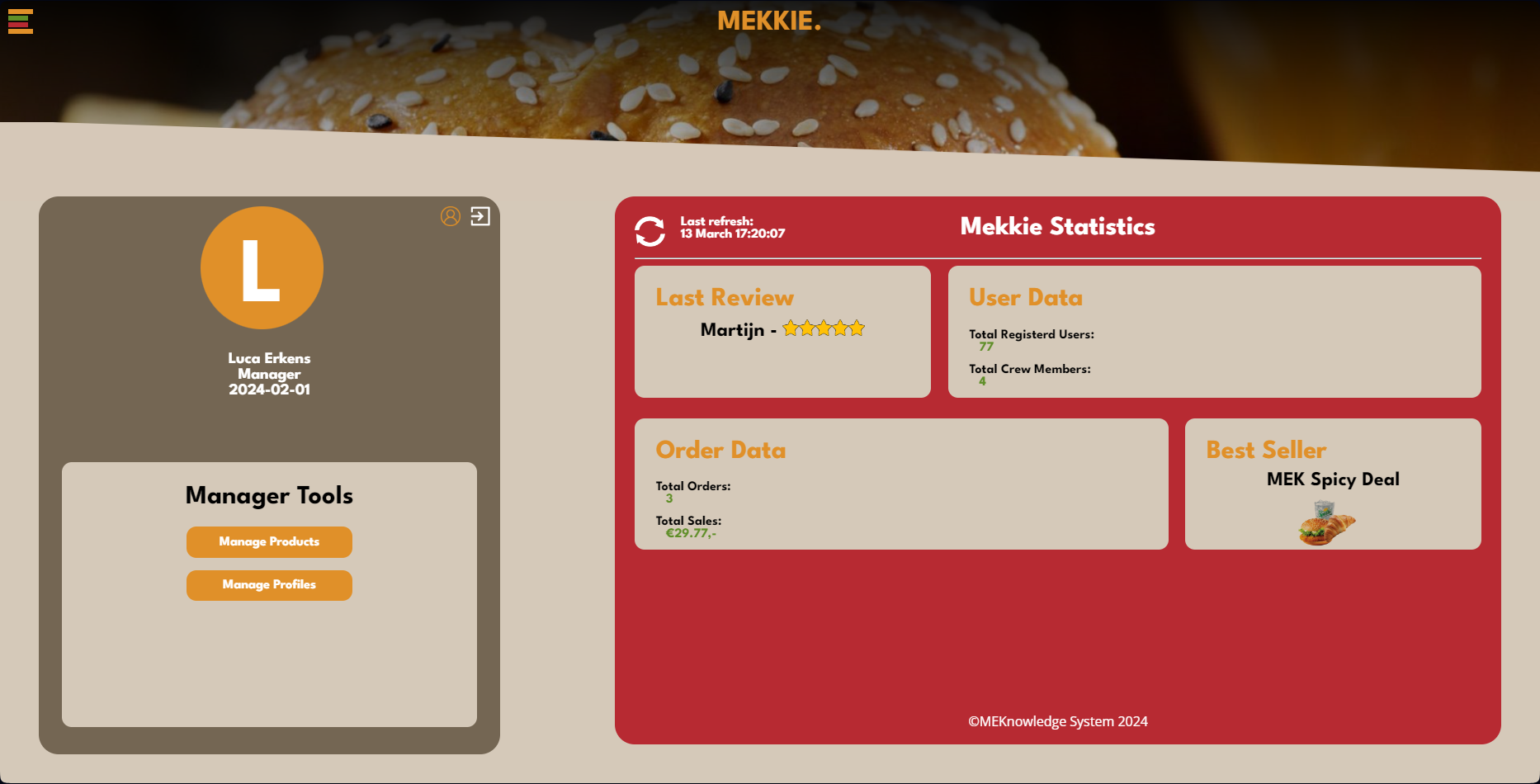 Developed a full-stacked website for a fictional burger restaurant called Mekkie, with full administration system, linked to a database